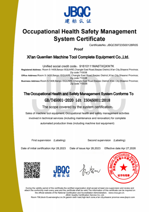 全聯(lián)成套全(quán)面通過(guò)職業健(jian)康安全(quán)管理體(tǐ)系認證(zheng)🌈證書